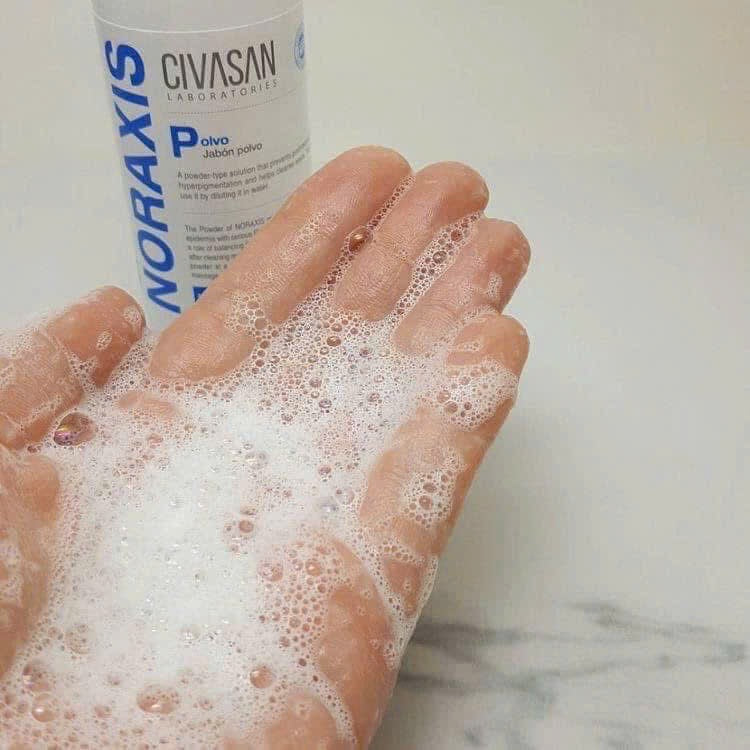 • Tạo bọt: Lấy một lượng sản phẩm vừa đủ ra tay, thêm một ít nước và chà nhẹ nhàng để tạo bọt. Nhờ có thành phần tạo bọt đặc biệt, Civasan giúp tạo ra lớp bọt mịn, dễ dàng thoa đều lên da.