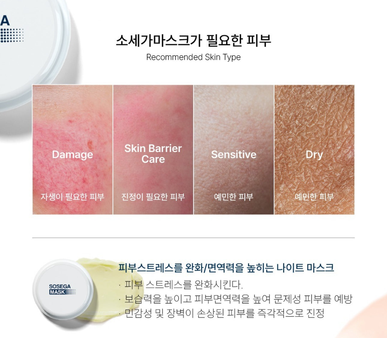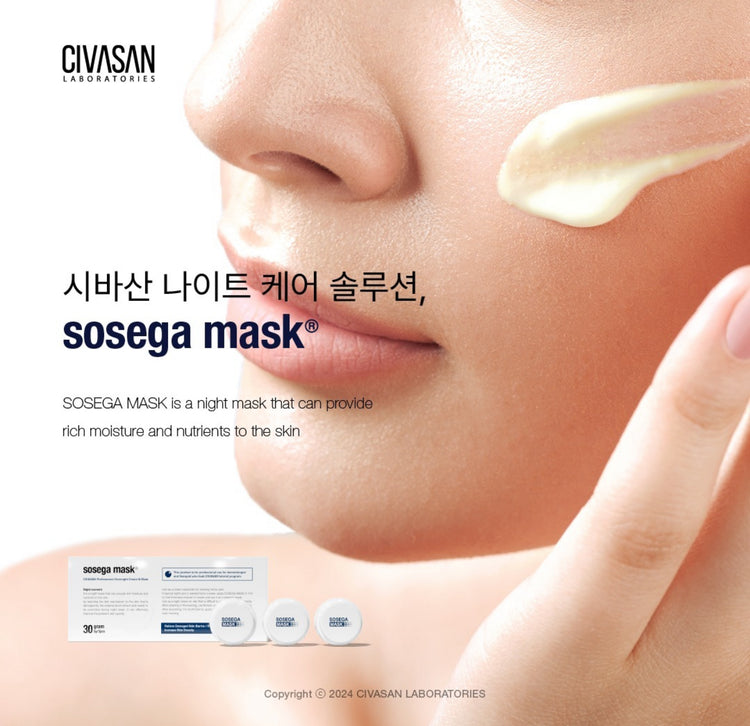 Mặt nạ ngủ kết hợp kem dưỡng phục hồi hàng rào bảo vệ da hiệu quả. Civasan Sosega Mask có kết cấu dạng kem mịn, không mùi, khi apply lên da sẽ tạo thành một lớp màng mỏng và không cần rửa lại với nước như những loại mặt nạ rửa thông thường thích hợp với tất cả các loại da, da đang tái tạo, da nhiễm corticoid.